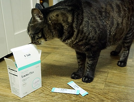 초동이의 변비로 초동이에게 맞는 유산균을 찾으려고 여러 개를 구입하던 중 고다 카페에서 유산균 체험 이벤트를 하길래 신청했어요. 그런데 제 간절함이 닿았는지 선정이 되었답니다~ ^_^ 바로 브이랩 락토플러스 유산균이에요~ 수의사들이 만들었다고 하니 왠지 더 믿음이 가더라고요~ㅎㅎ 한 상자에 30포가 들어 있고 하루에 한 포 먹이면 한 달 먹일 수 있어요~ 초동이 발이 나왔어요~ㅋㅋ 가을이가 먼저 검수를 하네요..