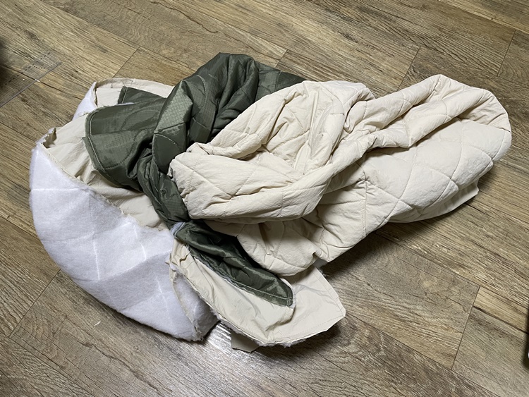 봉마담포목점 패딩인데 검정으로 남편옷 만들고 이건 제꺼 하려고 애껴두었던 걸 썰었어요~ㅋㅋ